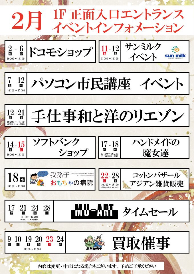 開催予定につきましては時間、日程が変更となる場合がございます。