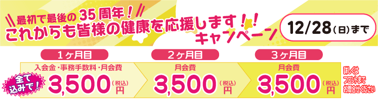 ※12/29(月)・1/3(土)は全会員種別の方がご利用出来ます。(トレーニング終了/17:30 退館時間/18:00)