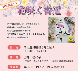TVや雑誌等のメディアでも多数紹介、掲載されている花咲く書道。 絵心も書道経験も不要です。 文字に想いを込めて、上手い下手ではなく、嬉しい楽しいが花書です。