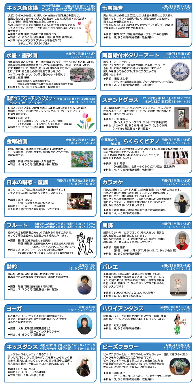 各講座が交代で使用しますので、後片付け等のマナーを守ってお互い気持ちよく受講できるようにしてください。