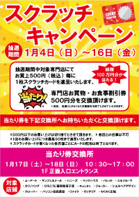 抽選期間中対象専門店にてお買上500円(税込)毎に1枚スクラッチカードを進呈いたします。